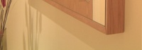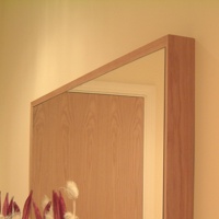 A distinct and minimal wall mirror made from solid Oak. The deep frame stands proud on the wall, and the mirror glass is mounted to the front to give a subtle impression of depth and dimension. |