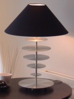 This hand finished aluminium lamp brings a contemporary style to a tradtional urn shape. The distinctive form is created simply by the relative proportions of the round horizontal plates.